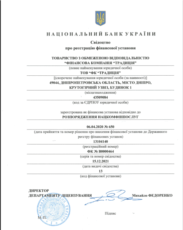 | Необходимые документы | Паспорт гражданина Украины, ИНН |