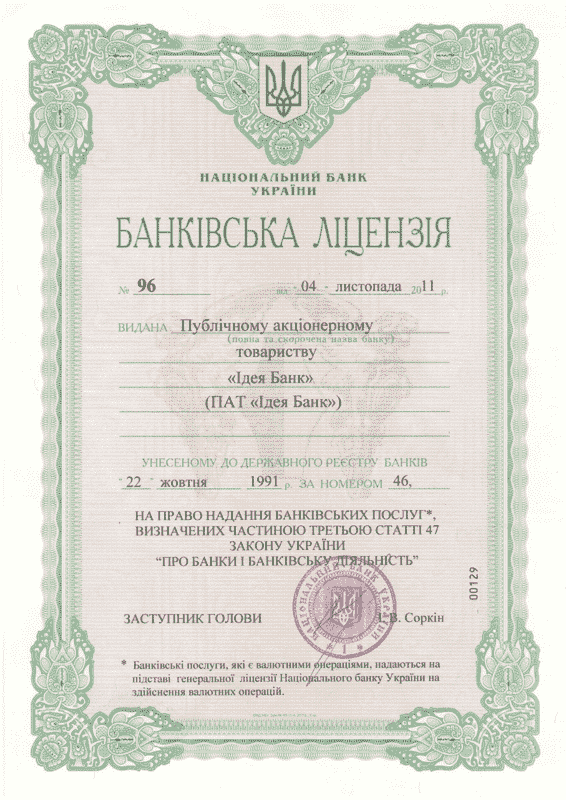 Лицензия НБУ №96 от 04.11.2011Отправьте заявку