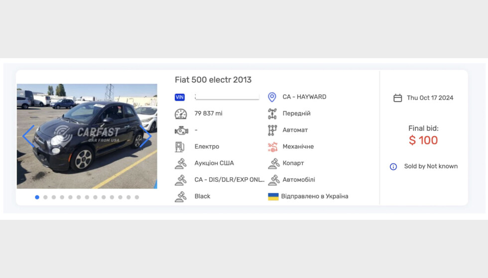 Прежде чем начать рассказывать об автомобилях, которые можно приобрести до 2 тыс. долларов на рынке Украины, мы предоставим информацию, что стать владельцем хорошего авто можно и за «копейки». Так, украинский покупатель заплатил всего 100 долларов за Fiat 500 Electric 2013, выиграв эту машину на аукционе.