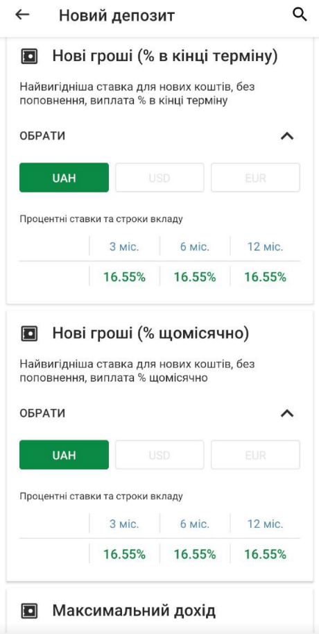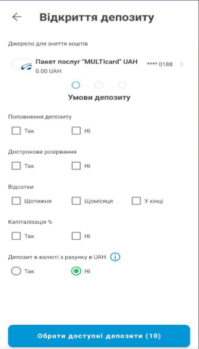 После чего ему становятся доступны депозиты с выбранными условиями.