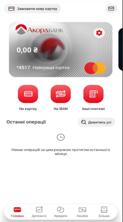 Как и в двух предыдущих случаях, стать клиентом банка можно удаленно. Для этого необходимо загрузить мобильное приложение Аккордбанка, нажать «Зарегистрироваться», отправить через портал «Дія» копию паспорта для идентификации и пройти легкий пошаговый сценарий.