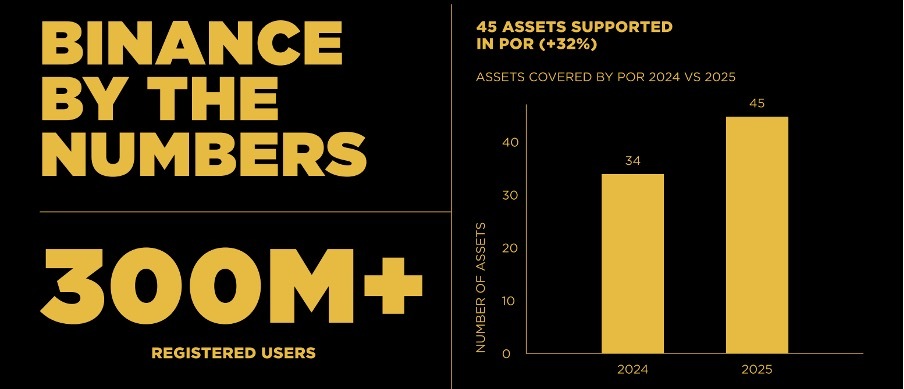 - Proof of Reserves: 45 активов в охвате и $162,8 млрд в пользовательских балансах, верифицированных через PoR.