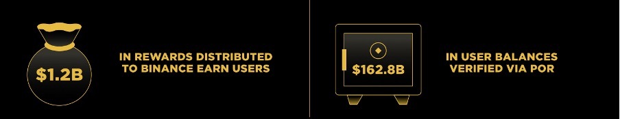 О Binance Earn сообщается, что в отдельные моменты более 30% всех активов, депонированных на Binance, были размещены в продуктах Earn. За 2025 год Binance Earn распределил $1,2 млрд криптонаград. В отчете также перечислены продуктовые дополнения (RWUSD, Plasma On-Chain Yields, Soft Staking, Discount Buy).