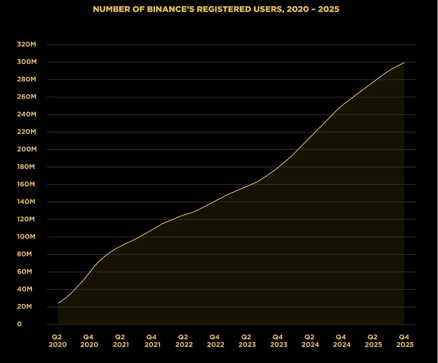 - $34 трлн — объем торгов на Binance по всем продуктам за 2025 год; $145 трлн — совокупный объем торгов на платформе за все время.