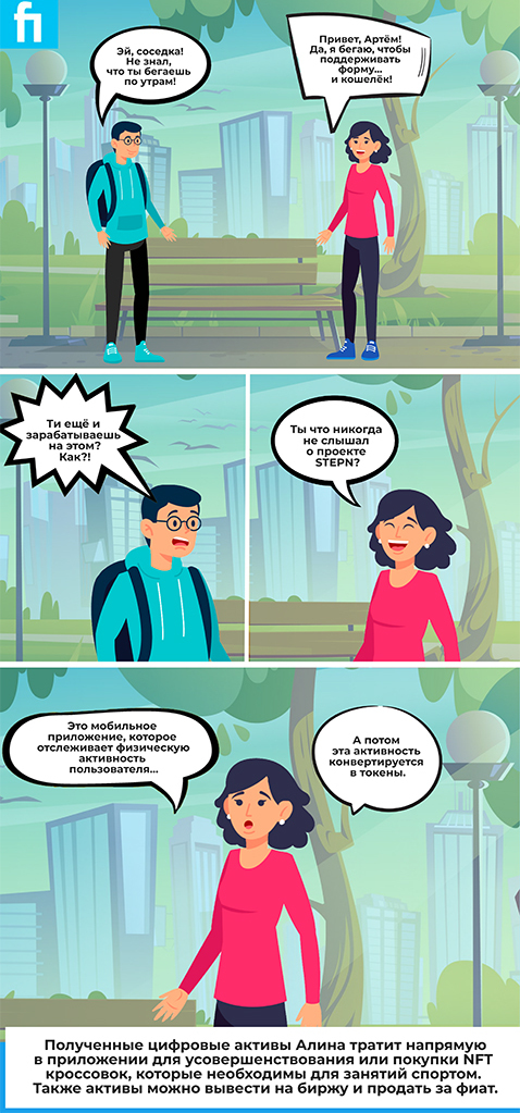 1). Многие любят ходить на прогулки. Заниматься спортом. Вести активный образ жизни. До недавнего времени эта активность никак не вознаграждалась (кроме хорошего самочувствия и улучшения здоровья. – Ред.). Криптоэнтузиасты увидели возможность и создали криптпроекты, которые платят за физическую активность.