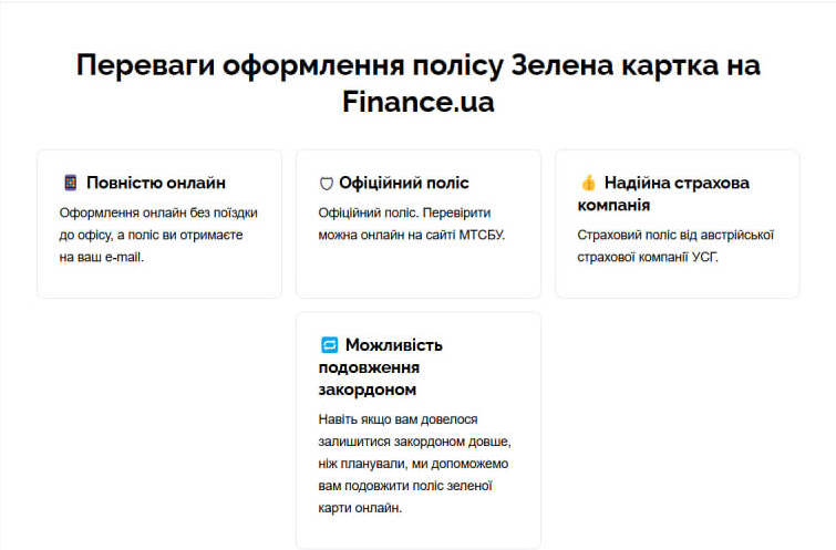 Отметим, если вы оформляете «Зеленую карту» на Finance.ua, то получаете поддержку в случае страхового события или продления полиса на украинском языке, а также полезные подарки.