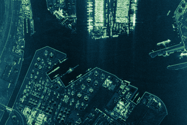 Вот как выглядит порт Роттердам в радиолокационном диапазоне (фото с сайта ICEYE)