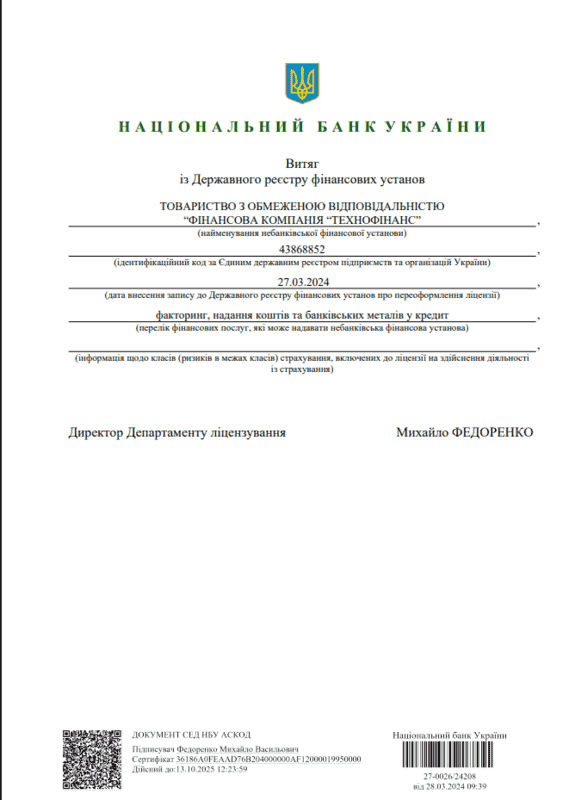 Ліцензія переоформлена 27.03.2024 р.