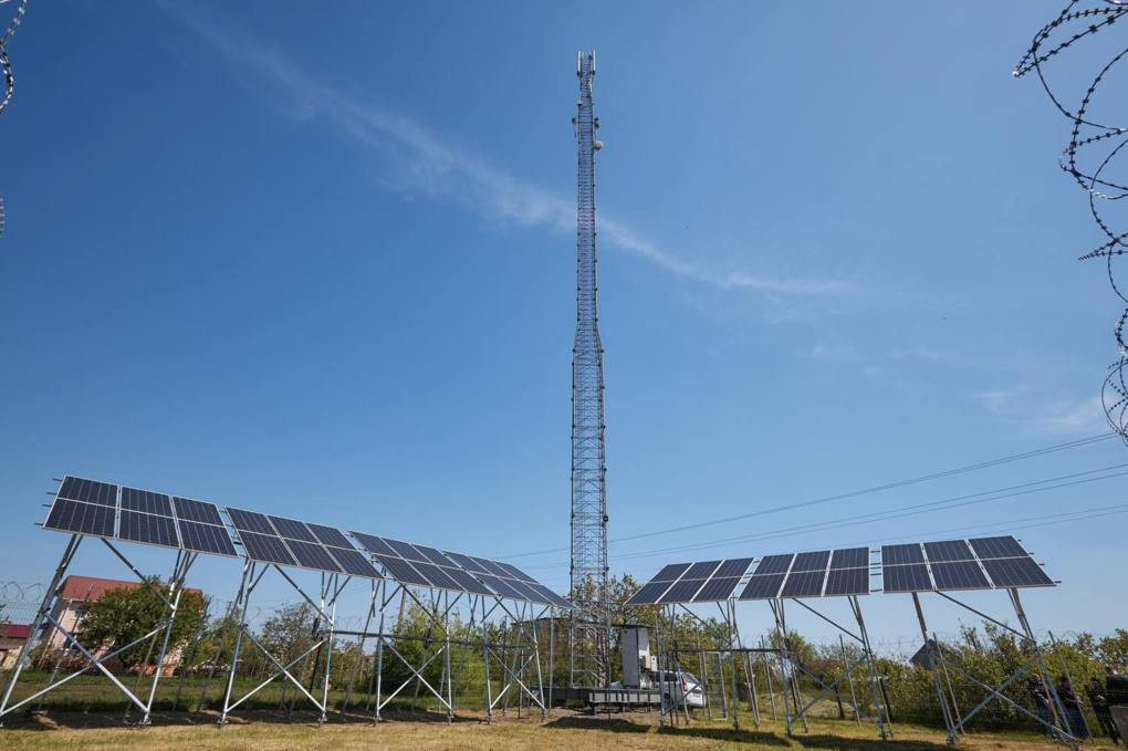 А це – енергонезалежна базова станція (вона ж вишка) на Одещині. Має працювати навіть під час блекаутів. Станцію запустив мобільний оператор lifecell. Її підживлює 7 сонячних батарей. Червень, 2023 року. Фото: віцепрем’єр-міністр – міністр цифрової трансформації України Михайло Федоров / Telegram