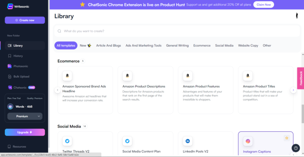 З особливостей роботи Writesonic вартує виділити відсутність української мови та відносно дорогий місячний абонемент вартістю від $33 в залежності від кількості матеріалів які ви маєте намір генерувати.
