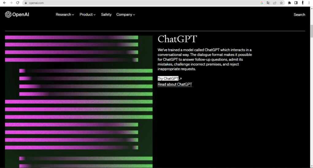 Для того, щоб розпочати роботу з ChatGPT необхідно перейти на сайт https://openai.com/ та пройти реєстрацію за посиланням Try ChatGPT. Вам знадобляться наявний номер телефона та email. Після отримання кодів підтвердження ви зможете розпочати роботу з чат-ботом.
