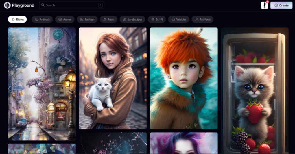 Переходимо на сайт https://playgroundai.com/. Перед тим як зареєструватися варто переглянути колекцію на головній сторінці, це роботи користувачів і їх дуже багато. Є впевненість, що ви будете вражені тим які високоякісні зображення генерують за допомогою ШІ.