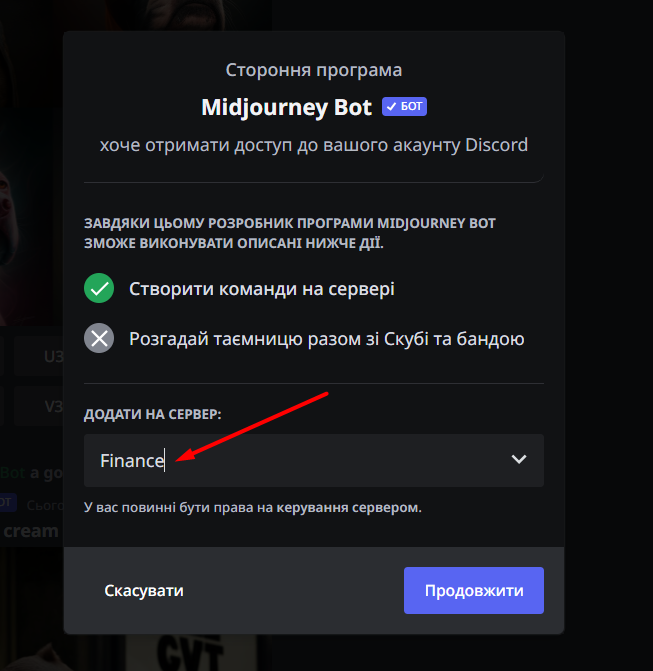 Обираємо «створити власний», далі «для мене та моїх друзів», вносимо довільну назву. Після переходимо з нашого сервера в довільну кімнату і додаємо бот Midjourney у нашу кімнату.