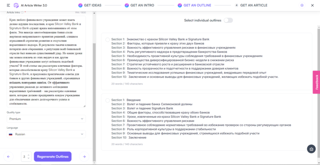 3. Далі AI пропонує 3 набори підзаголовків. Набір містить 6 або 7 підзаголовків.