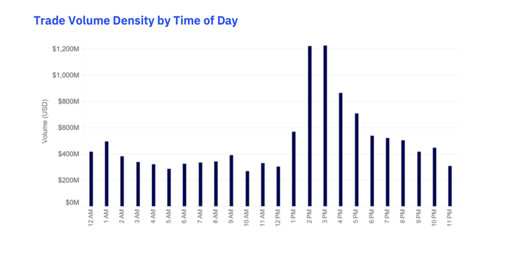 Звіт також показує добові патерни ліквідності. USDT-пари, завдяки глобальній аудиторії, демонструють більш рівномірну активність протягом доби й меншу залежність від конкретних регіональних торгових вікон. Водночас пари, прив’язані до USD і EUR, частіше поглиблюються у «свої» часові проміжки, відображаючи інституційні вікна та фіатну інфраструктуру.