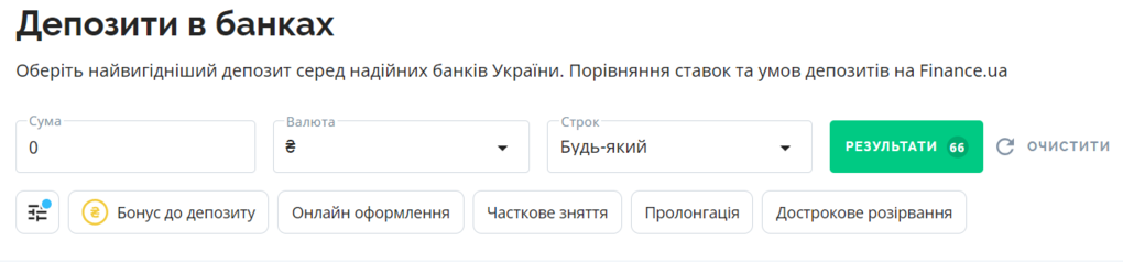 Для пошуку депозиту з найвищою дохідністю зручно скористатися скринером, до прикладу таким як є на Finance.ua.