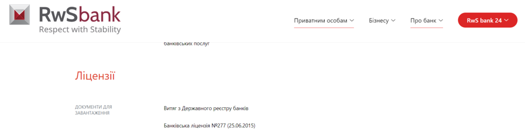 Участь RwSbank у Фонді гарантування вкладів фізичних осіб. Джерело: rwsbank.com.ua