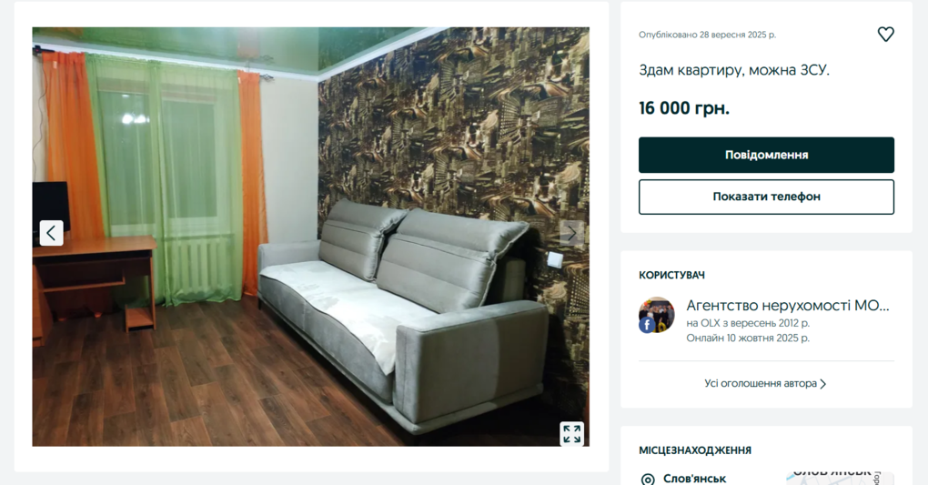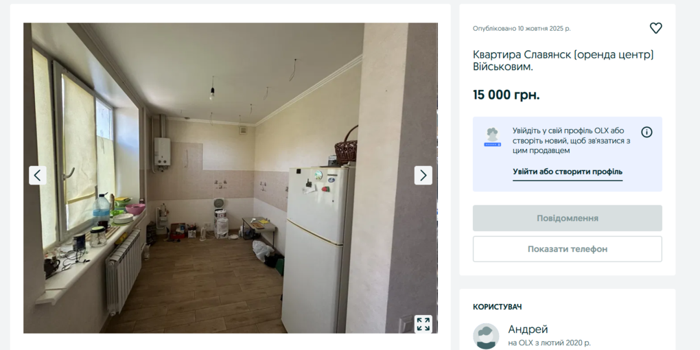 «Рекламують обʼєкти з кращими умовами, а по факту пропонуються за ті ж гроші набагато гірші, з поганими умовами. Середня ж ціна однокімнатної квартири в Славʼянську — 10 тис. грн. Це майже як на масиві в Києві.