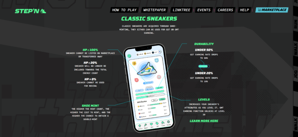 Як заробляє команда проєкту? Для того, щоб розпочати заробляти криптовалюту в додатку STEPN необхідно купити NFT кросівки – це і є ключовим джерелом доходу команди. Вартість кросівок починається від $20 в залежності від якості. Окрім того, в додатку є маркетплейс при здійсненні угод на якому сплачується комісія, яка також є частиною прибутку розробників.