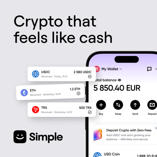 Якщо ви шукаєте безпечний і зрозумілий криптогаманець, де безпека даних і приватності на першому місці, та де ви завжди можете розраховувати на професійну підтримку, то спробуйте Simple Wallet. Додаток абсолютно безкоштовний, тож ви можете вже зараз відчути зручність, швидкість і безпеку світу криптовалют, не ризикуючи нічим.