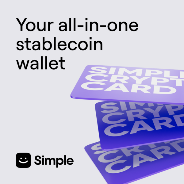 Simple надає також можливість зручно розраховуватись криптовалютою у магазинах, кафе та, власне, всюди де є звичайні банківські термінали. Для цього в гаманці потрібно відкрити криптокартку, яку можна інтегрувати з Apple Pay чи Google Wallet та сплачувати за товари простим дотиком смартфону. Щоправда, для відкриття картки потрібно бути резидентом ЄС.