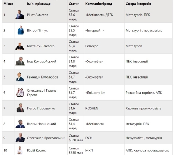 Загалом до списку Forbes потрапило кількадесят людей, але ми обмежимося першою десяткою. Отже, станом на 2021 рік найбагатшими українцями називали: