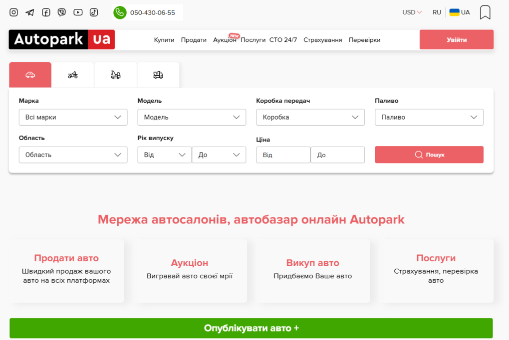 Окремим напрямом розвитку платформи став автоаукціон Autopark — формат прозорої купівлі, який компанія розглядає як альтернативу класичному ринку. У цій моделі Autopark виступає модератором і гарантом процесу: авто проходять базову перевірку, вся інформація фіксується в системі, а ціна формується ринком без ланцюга посередників. Покупець бачить реальний стан автомобіля ще до участі в торгах, що зменшує ймовірність маніпуляцій і підвищує передбачуваність угоди.