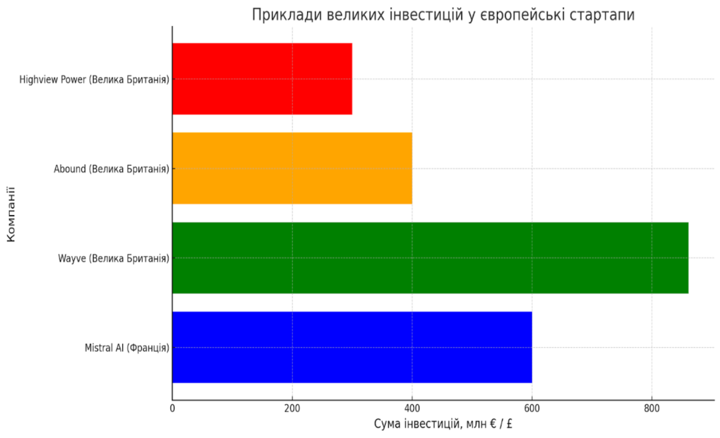 Приклади великих інвестицій у європейські стартапи можна навести: