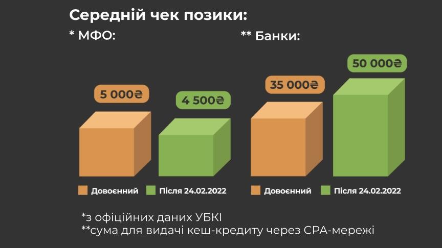 Можливо однією зі змін можна назвати збільшення середнього чека через банки та незначне зменшення через МФО. Однак зараз ми спостерігаємо тенденцію зростання.