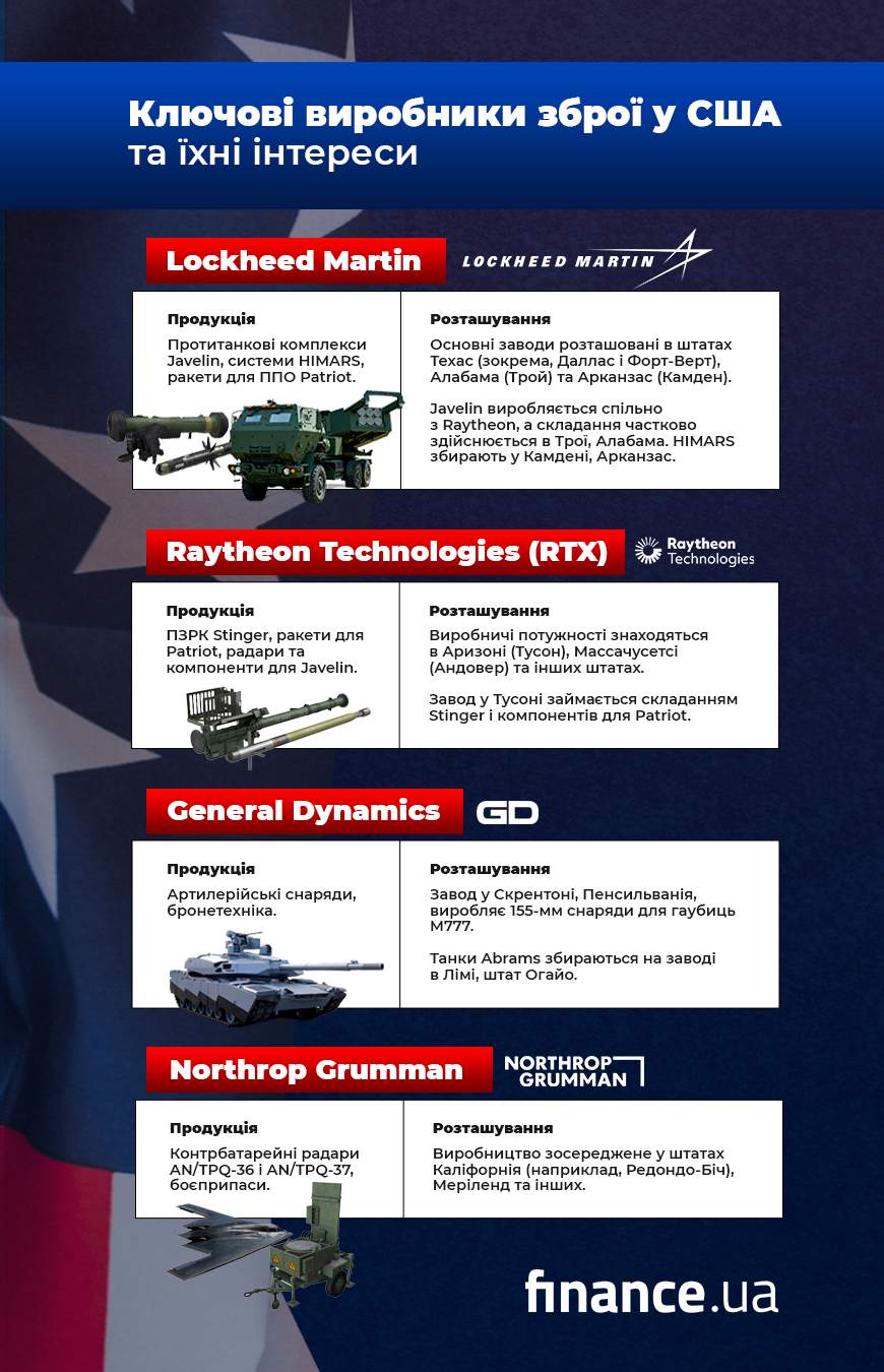 Ці компанії за останні два роки отримали мільярдні контракти на поповнення американських запасів і постачання зброї в Україну, що сприяло економічному зростанню у відповідних регіонах США.