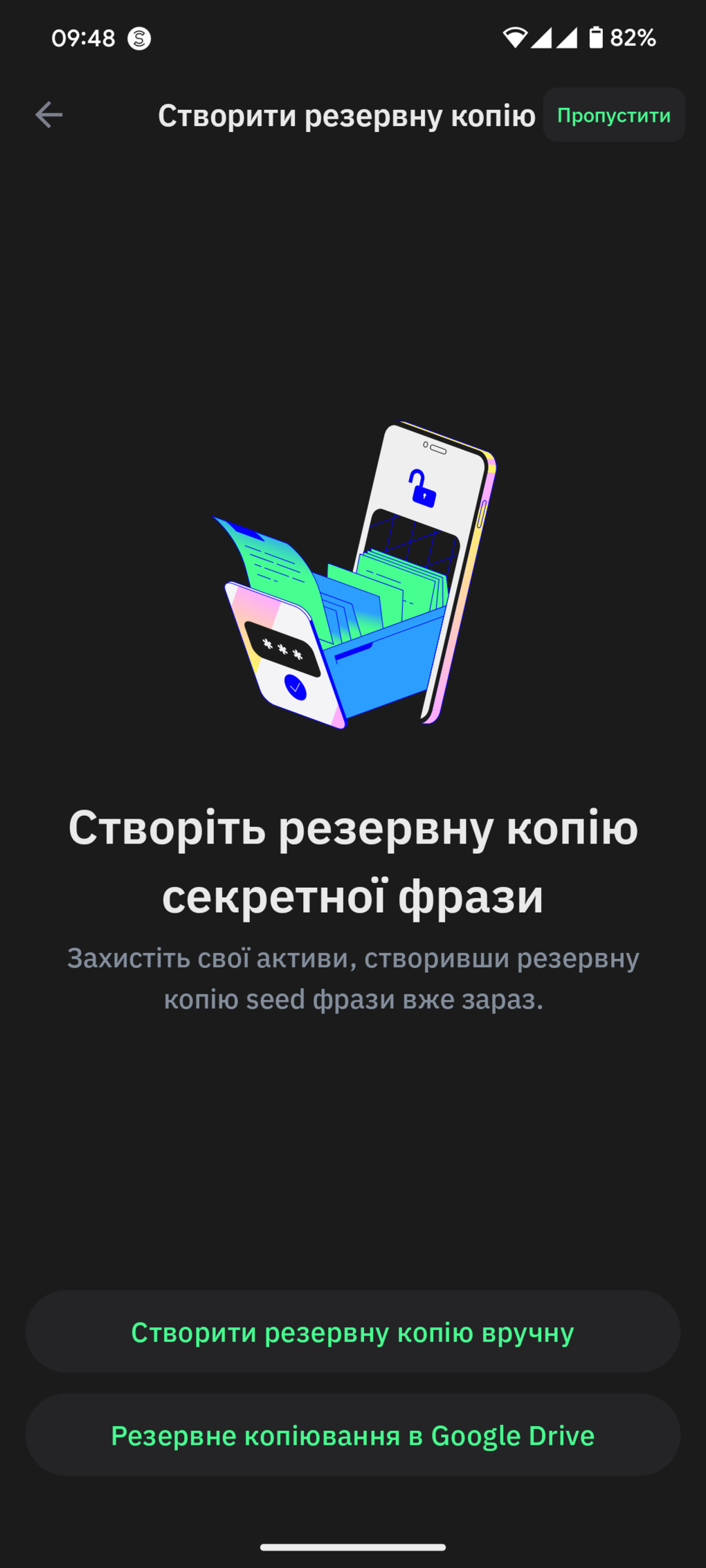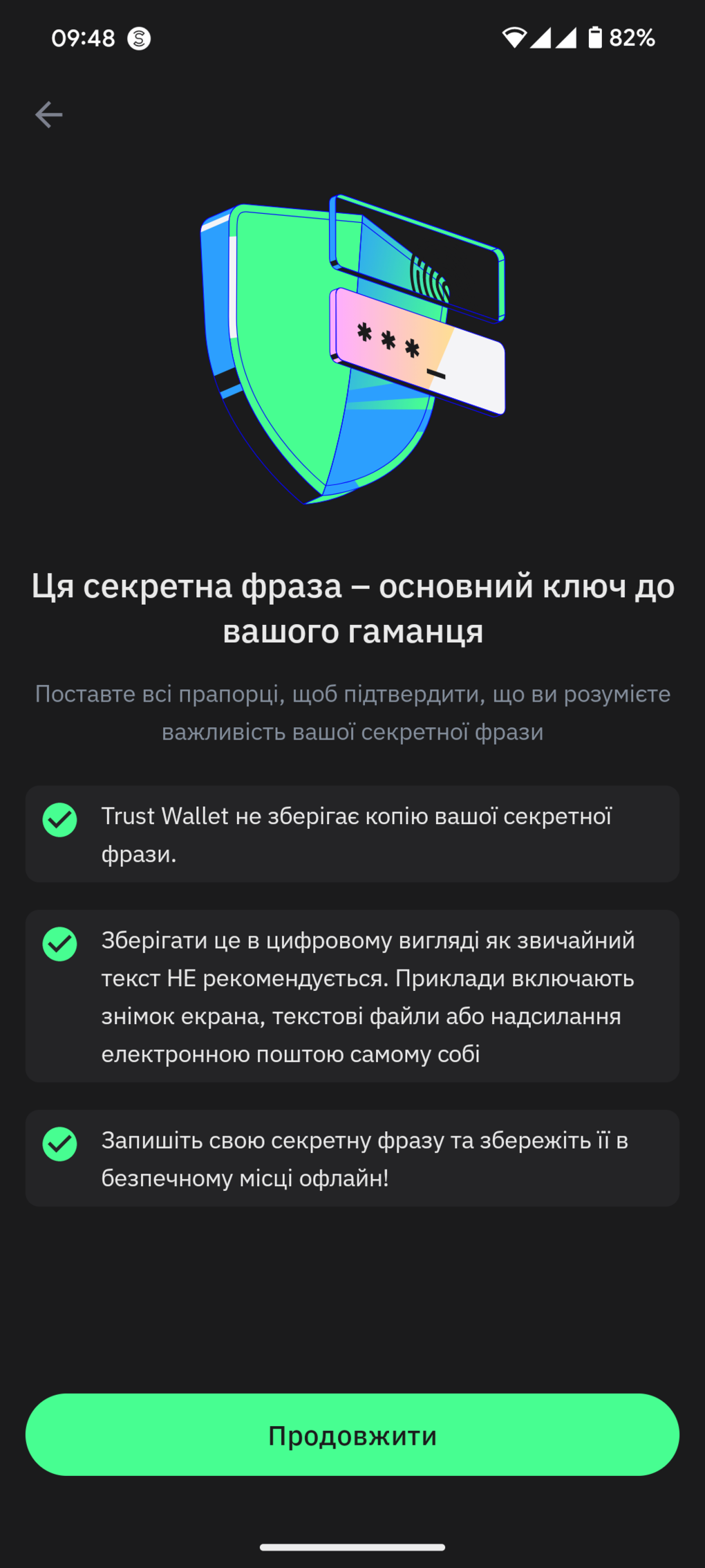4. Створюємо резервну копію секретної фрази.