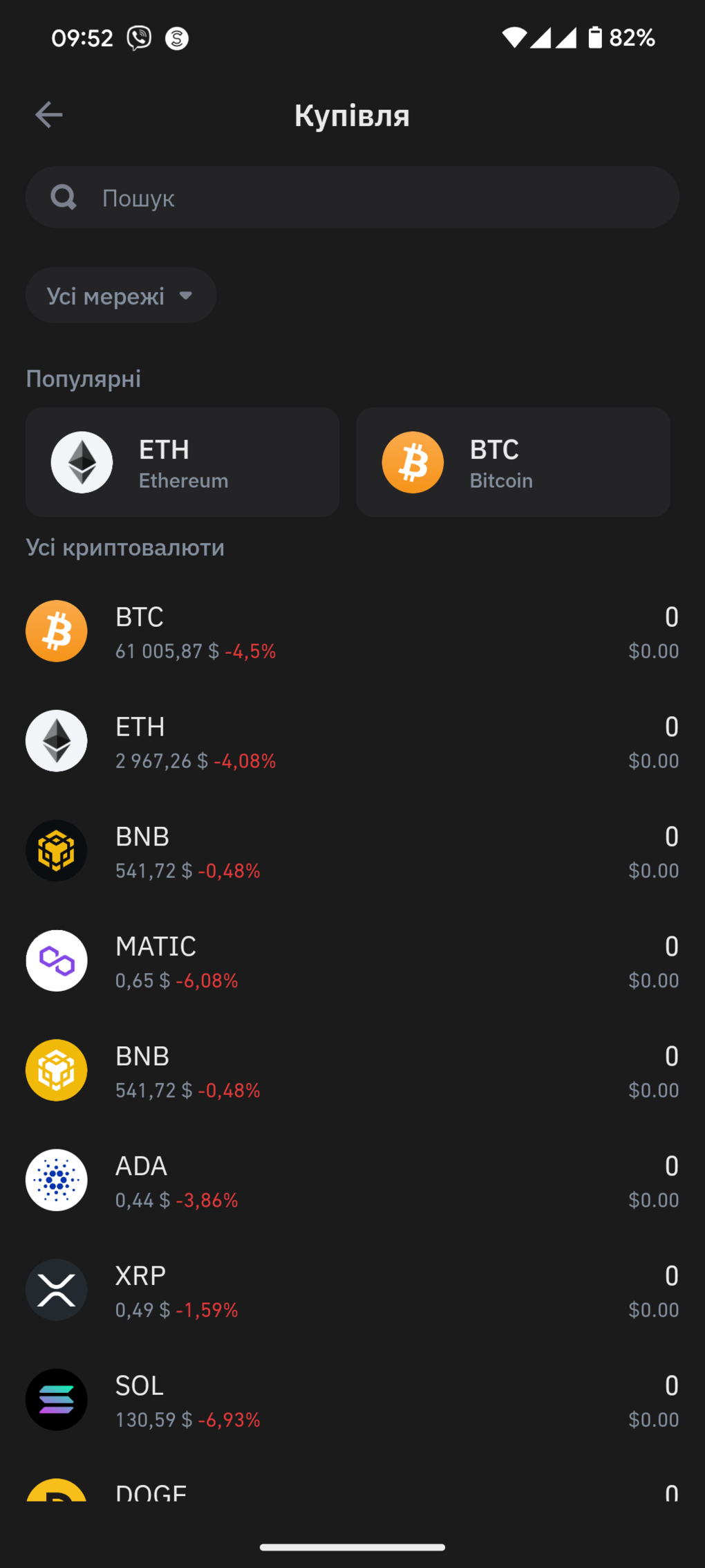 7. Далі все інтуїтивно зрозуміло. Натискаємо купити та обираємо актив, що нас цікавить у списку або знаходимо його через пошук.