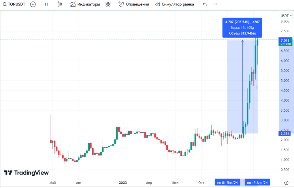 Графік зміни вартості Toncoin. Джерело: OKX