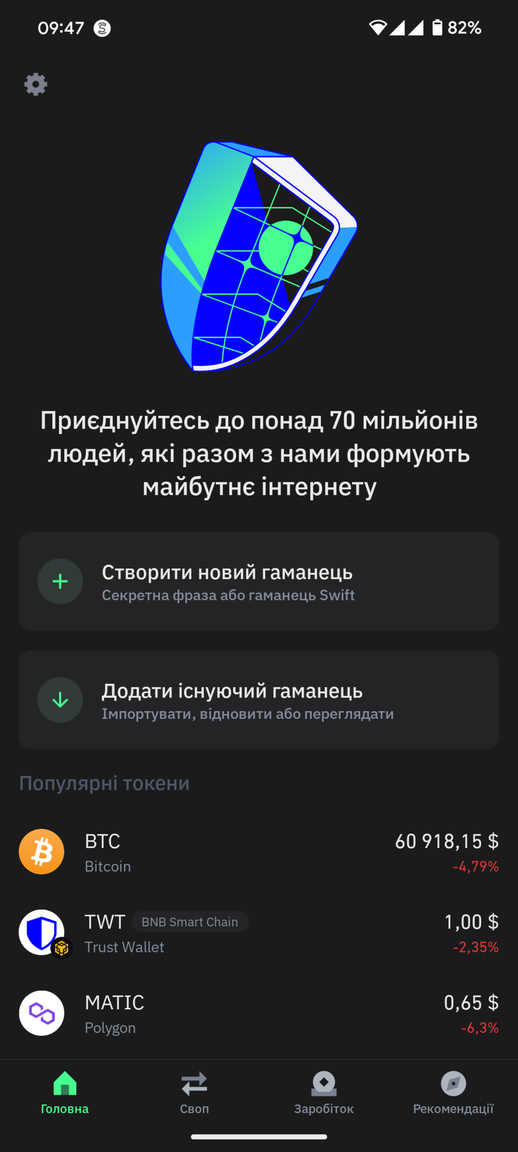 1. Встановити на свій смартфон додаток гаманця.