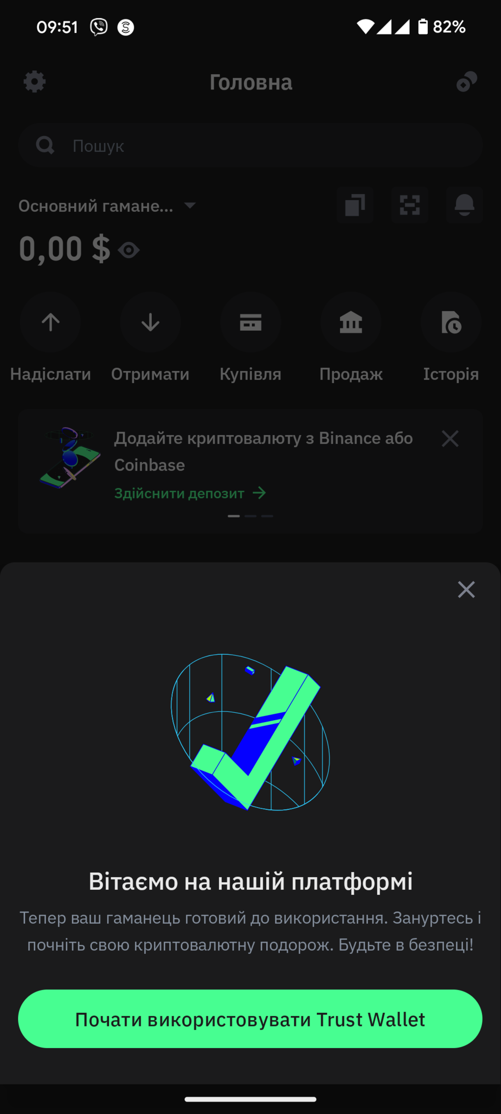 6. Вітаємо, ваш перший криптовалютний гаманець створено.
