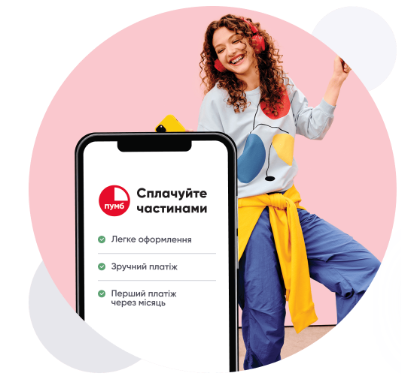 Розстрочка «Плати частинами» не містить прихованих комісій: клієнт відразу бачить розмір щомісячного платежу та всі умови, без додаткових платежів.