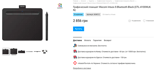Ціни на хороші графічні планшети, які підійдуть для щоденного використання, стартують від 2 тис. грн. Вартість пристроїв залежить від чутливості пера, роздільної здатності, а також наявності/відсутності гарячих клавіш і додаткових функцій.