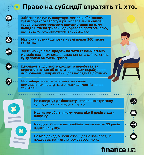 Якщо конкретний член одного домогосподарства має автомобіль, випущений менше п’яти років тому або два чи більше автомобілів віком не старше 15 років, то субсидія в такому разі не призначається.