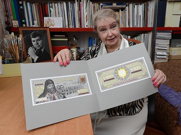 Ірина Максимова тримає ескіз 1000 гривень, який розробив її чоловік Борис Максимов. Фото: Сергій Тушинський / «Факти»