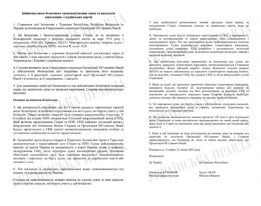 Потрібно одразу наголосити, що Україна з росією жодних документів не підписувала. Ця ініціатива укладена між українською державою, Туреччиною та ООН.