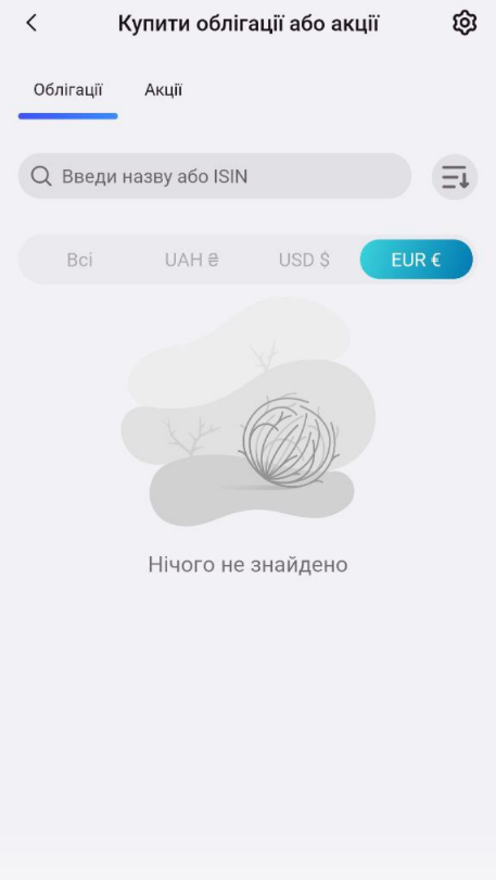 Якщо ви вперше цікавитесь купівлею ОВДП, вам запропонують відкрити рахунок у цінних паперах. Можете сміливо експериментувати: грошей за це з вас не візьмуть. Після цього вам запропонують вибрати з цінних паперів, що є у продажу, — у гривні, доларах США або євро: