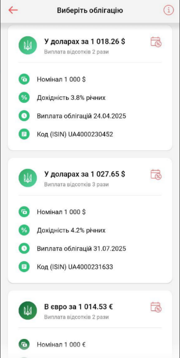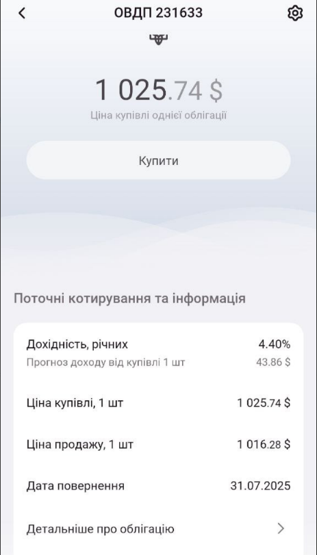 Тапнувши по рядку з облігацією, можна дізнатися всі необхідні деталі:
