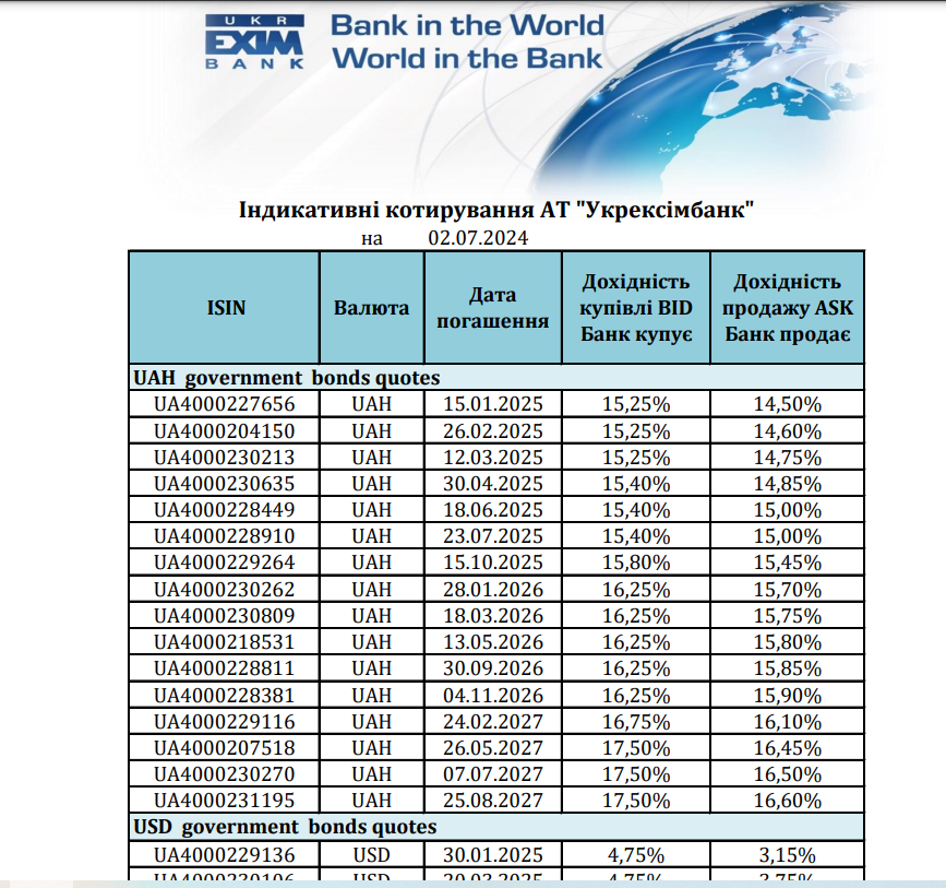 Загалом жодної переваги, щоб купити ОВДП саме в Укрексімбанку, ми не побачили.