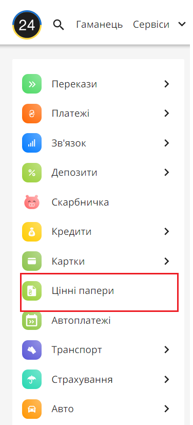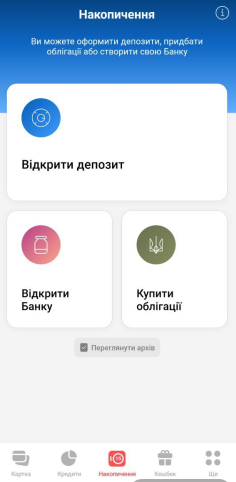 Заходимо в закладку «Продукти» і там натискаємо на іконку «Військові облігації»: