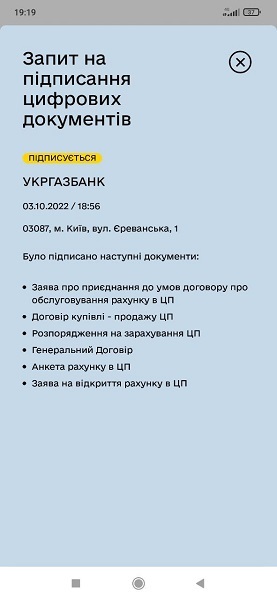 Запит надсилається партнеру, через якого ви вирішили придбати облігації. Система вас про це сповістить.
